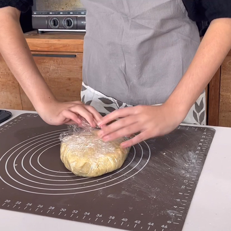 ②大きな一塊にしたらラップでくるんで1時間以上冷蔵庫で休ませる